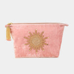 Elevate your beauty routine with this ultra-soft pink velvet pouch, adorned with one star embroidery. It can hold all your essential makeup products and easily fits into your suitcase or tote for work.