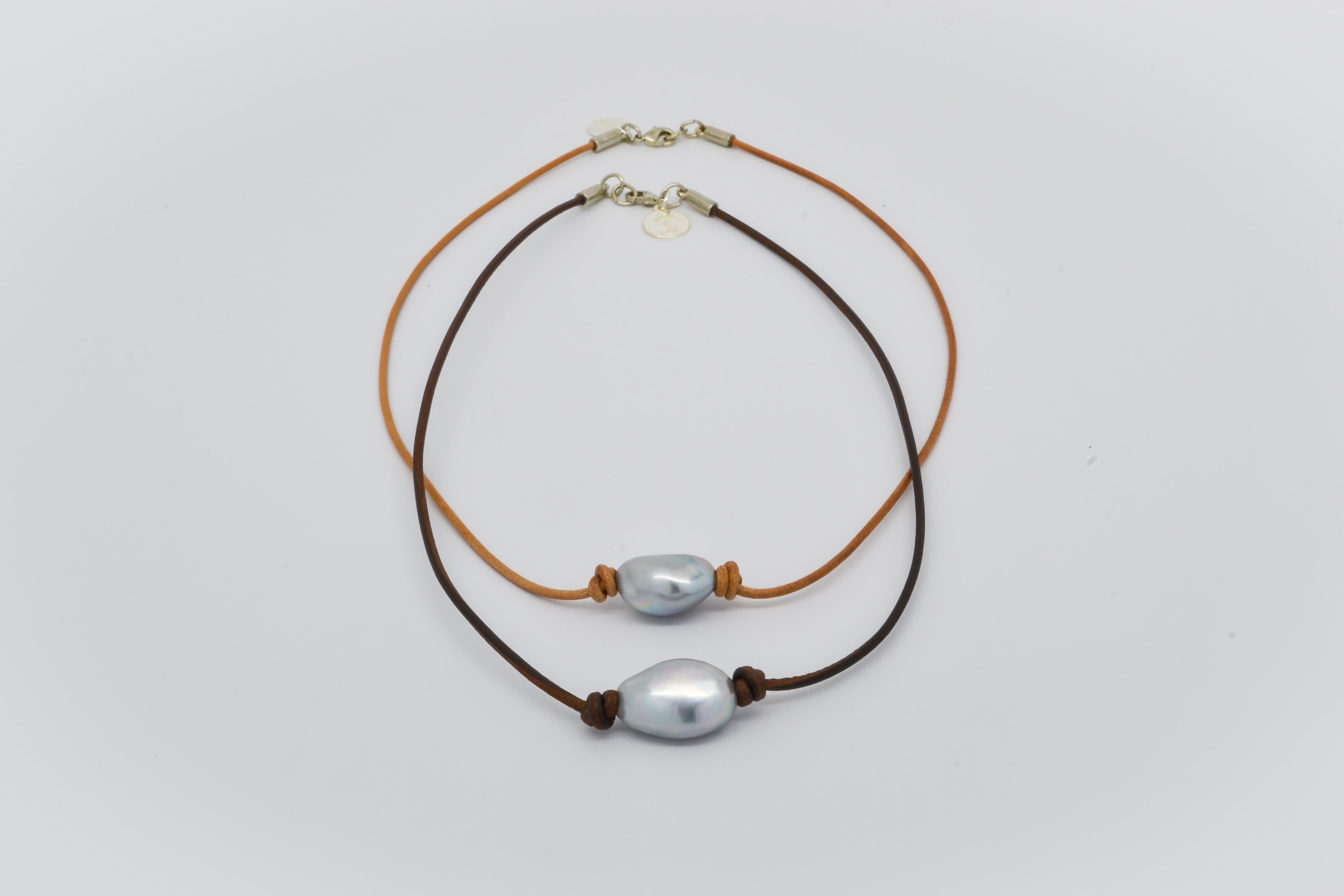 Single small baroque freshwater pearl choker on premium leather - Could vary length ... please specify when ordering. 16", 17", 18"