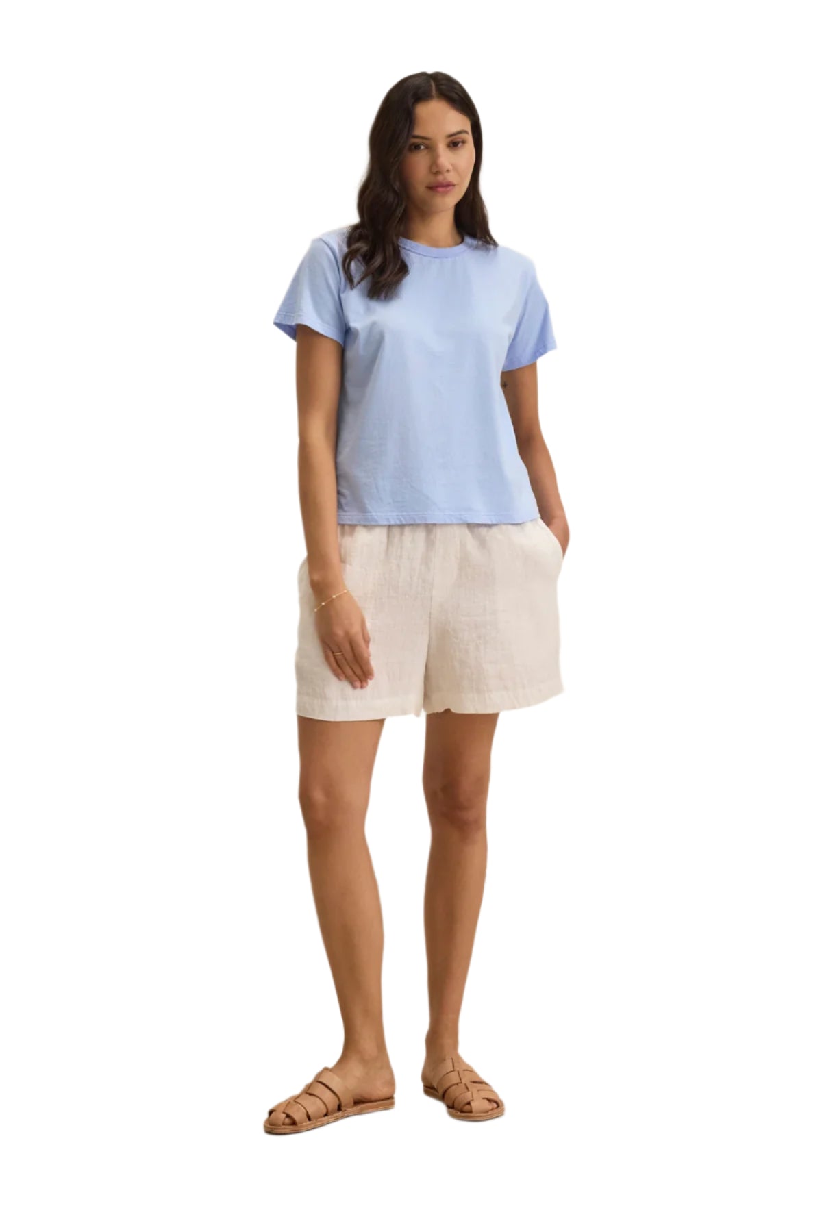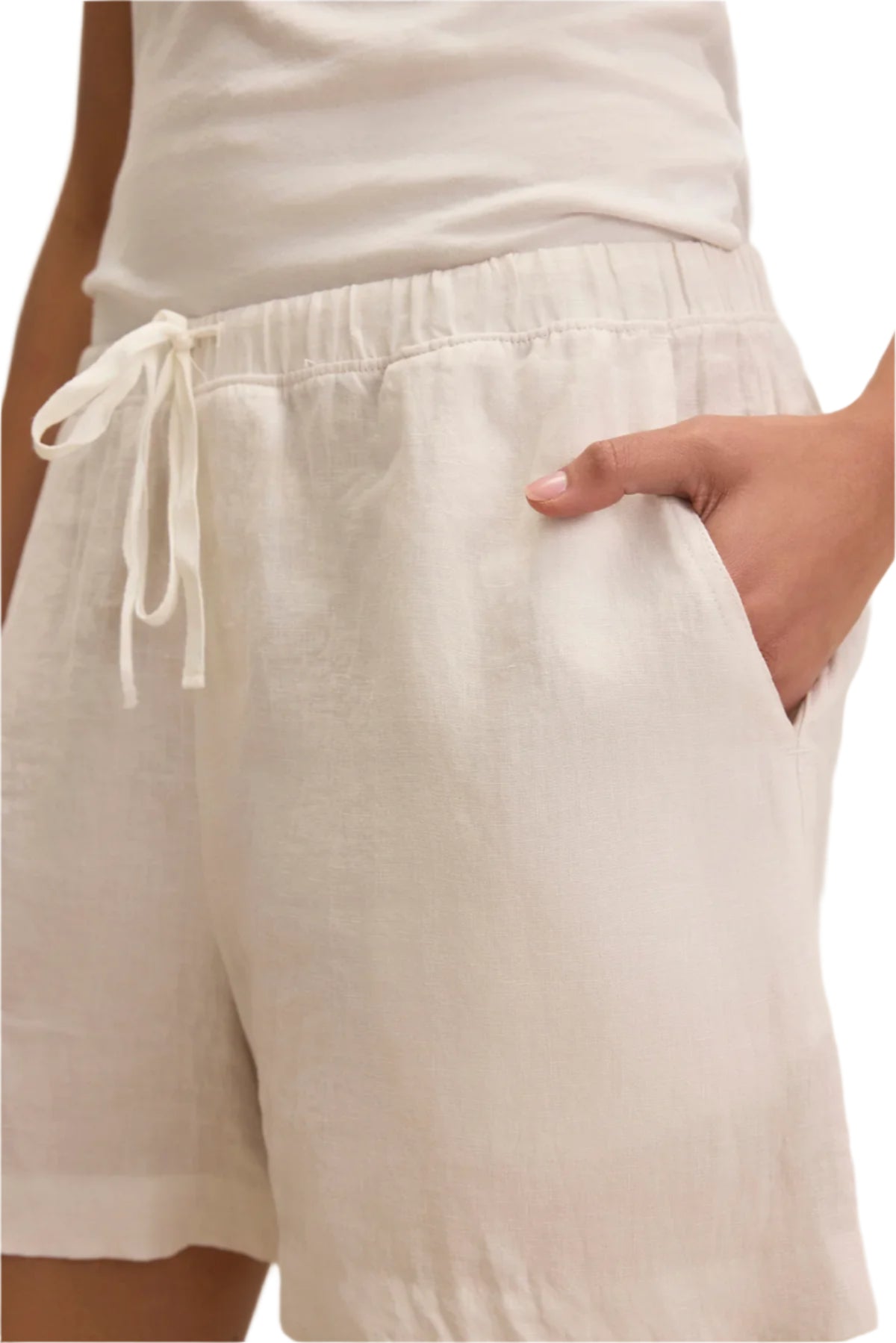 Crafted from lightweight woven linen, these shorts offer a breathable feel with a relaxed fit. A drawstring elastic waist ensures comfort, while slash pockets add everyday practicality.